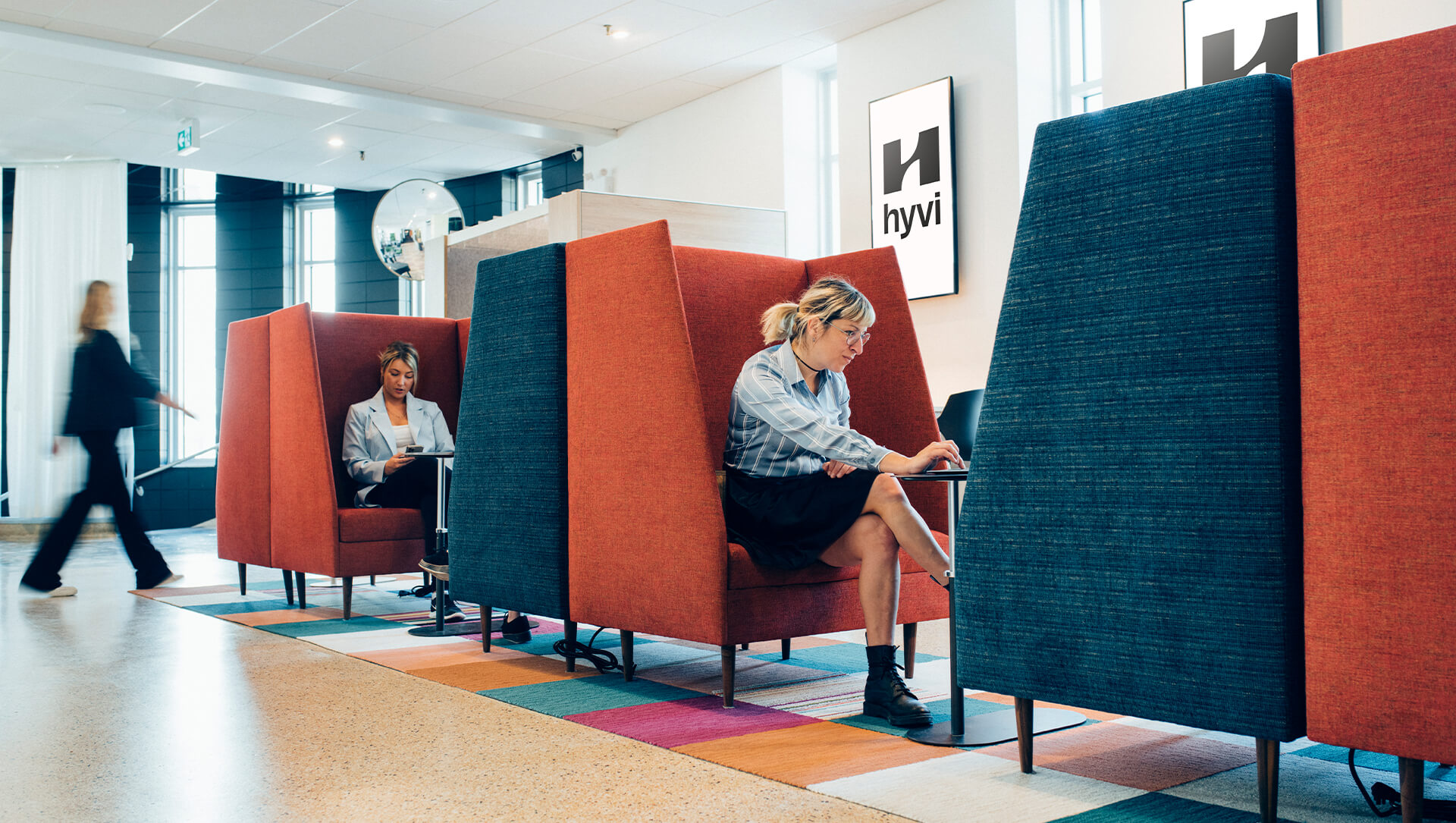 The Hyvi brand territory unfolds from the grid of the logo offering a rich and colorful, yet strong, identity inspired by performance and relaxation. These characteristics fit perfectly with Hyvi’s concept.