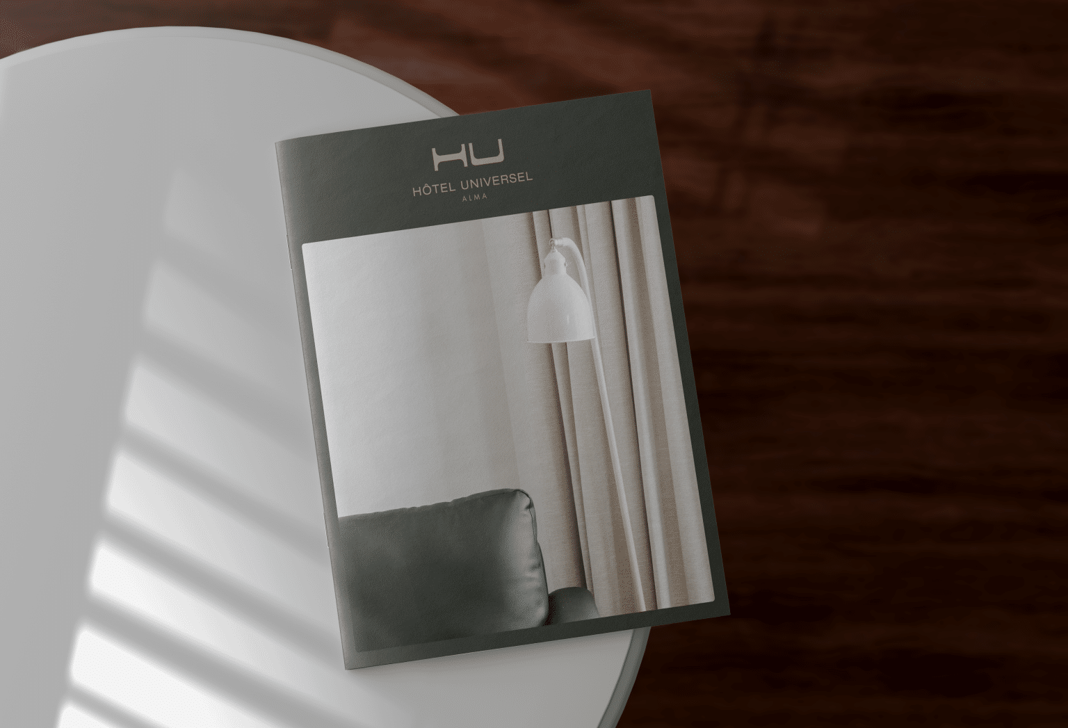 Le design vise à simplifier et moderniser l’identité visuelle tout en conservant la personnalité de l’Hôtel Universel. Le nouveau monogramme, formé des initiales de l’hôtel, reprend les lignes géométriques de son architecture, offrant un symbole à la fois compact et reconnaissable.